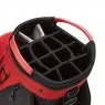 A durable and light cart bag with 14 club compartments with integrated handle at the top. the front. 2.5 kg Available in several colors.